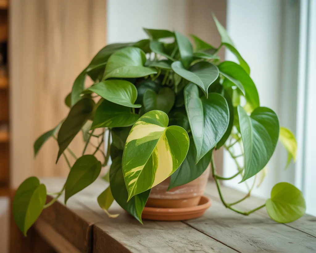 Money Plants are very common in Pakistani homes. It has heart-shaped green leaves. It grows in both water and soil. Many people believe it brings good luck and prosperity.